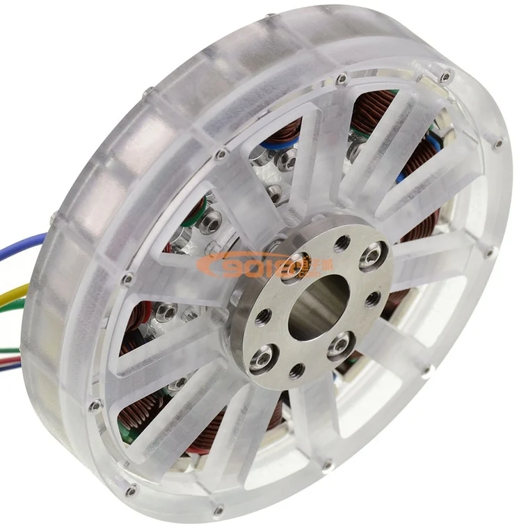 На следующем рисунке показан бесщеточный двигатель дискового типа, изготовленный с этой осью (Нажмите на изображение для получения подробной информации):