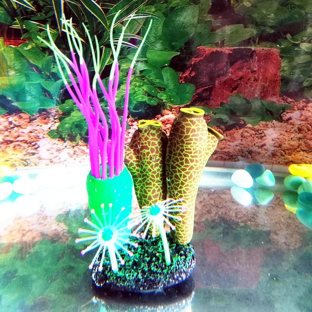 Аквариумный Аквариум Искусственный Мягкий Морской анемон силиконовый Флуоресцентный Декор