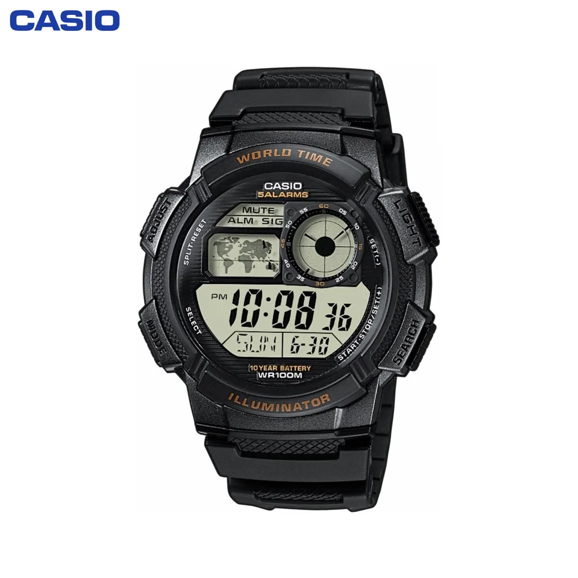 Кварцевые часы с электронным (цифровым) способом отображения времени. Светодиодная подсветка держится несколько секунд после нажатия кнопки. Секундомер с точностью измерений 1/100 секунды и максимальным временем измерения 24 часа. Таймер обратного отсчета с шагом измерения 1/10 сек и максимальным временем измерения 24 часа. Отображение текущего времени в основных городах и регионах мира. Функция «MultiTime» - показания текущего времени в 4-х зафиксированных городах. 5 независимых ежедневных будильника. Ежечасный сигнал. Функция включения/выключения звука кнопок. Автоматический календарь. 12 и 24-х часовой формат времени. Корпус часов выполнен из полимерного пластика. Черный ремешок изготовлен из полимерного материала, отличающийся своей прочностью и гибкостью. Ударопрочное пластиковое стекло выпуклой формы. Срок службы батареи 10 лет. Размеры: 48,1 x 43,7 x 13,7 мм, вес 40 грамм.