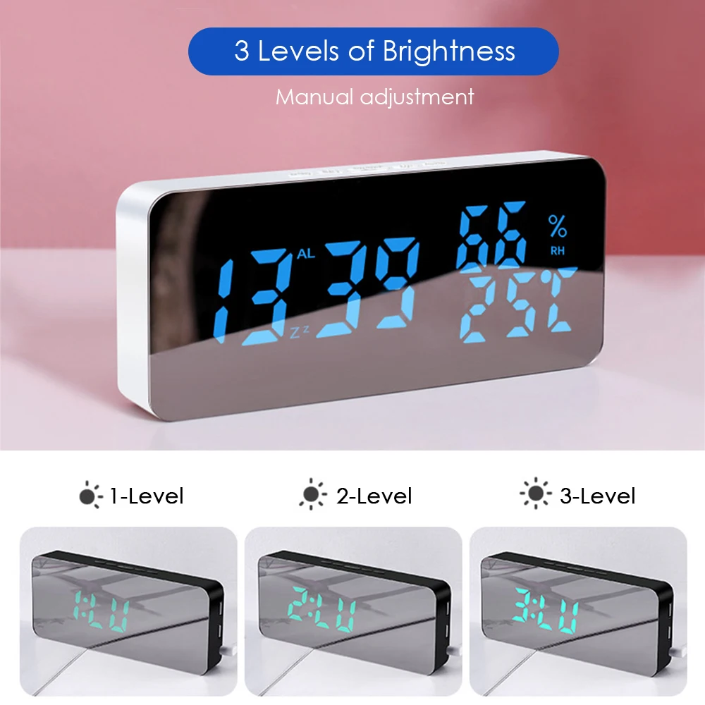 Цифровой зеркальный Будильник USB/источник питания от аккумулятора, светодиодные цветные часы с 3 временными дисплеями, функция регулировки яркости, функция повтора