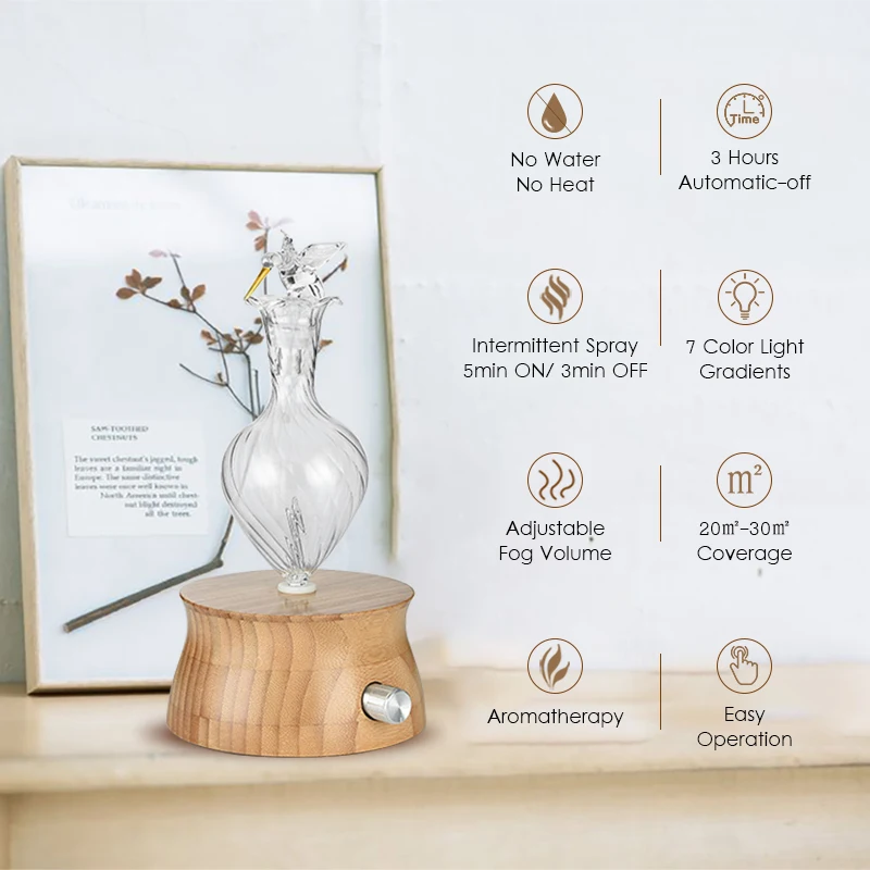 Безводное эфирное масло диффузор дерево и стеклянный рассеиватель для ароматерапии ароматерапия ингалятор для эфирных масел для дома штепсельная вилка ЕС
