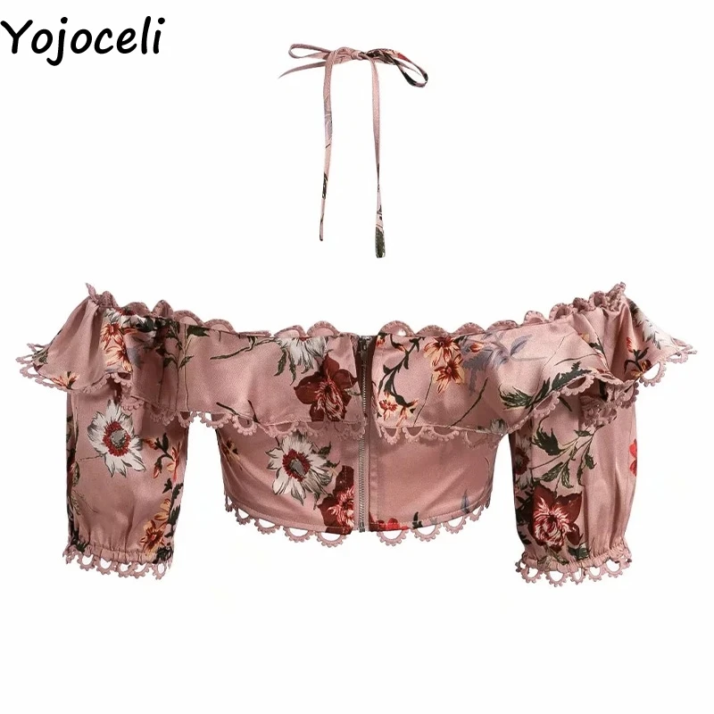 Yojoceli Сексуальная Печать с открытыми плечами блузка для женщин элегантные вечерние цветочные короткие обрезанный женский топ летний классный Топ blusas