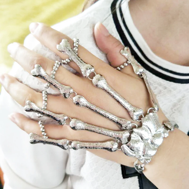 Кости браслет, соединенный с кольцом на пальце поделки Хэллоуин реквизит для ночного клуба вечерние панк браслет, соединенный с кольцом на пальце в готическом стиле персонажа мультфильма Черепа скелета