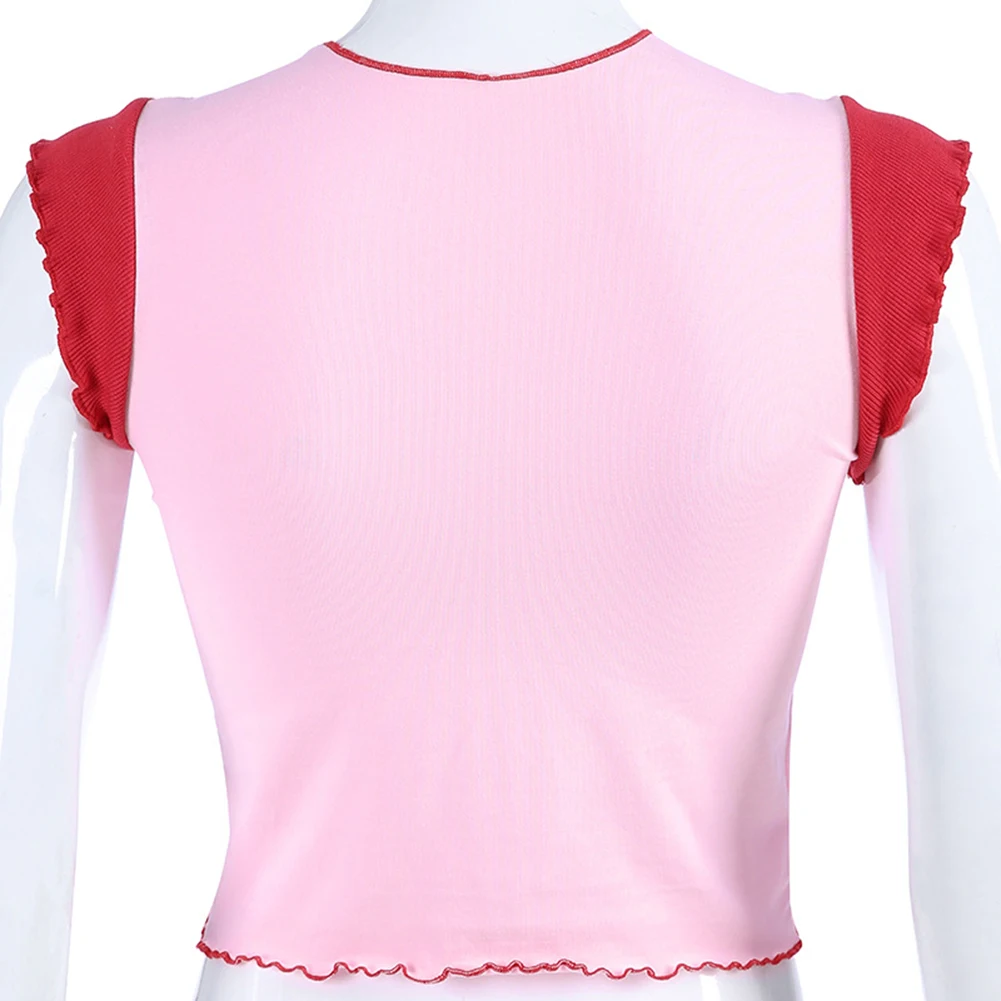 Летняя футболка из хлопка с розовой клубникой, Милая женская футболка с модным принтом контрастного цвета, топы, футболки, одежда, 2019