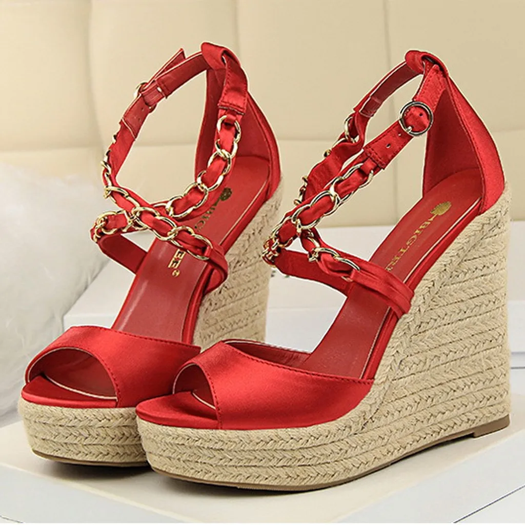 Модные женские льняная веревка с перекрестными ремешками; женские толстые нижние сандалии