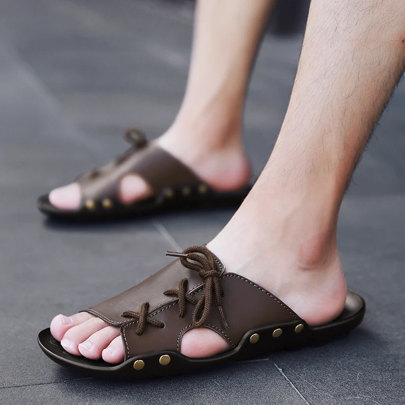 Модные мужские шлепанцы; Летняя Пляжная Мужская обувь; Вьетнамки из кожи; Hombre zapatillas; Удобные мужские сандалии; Мужская повседневная обувь; Светильник