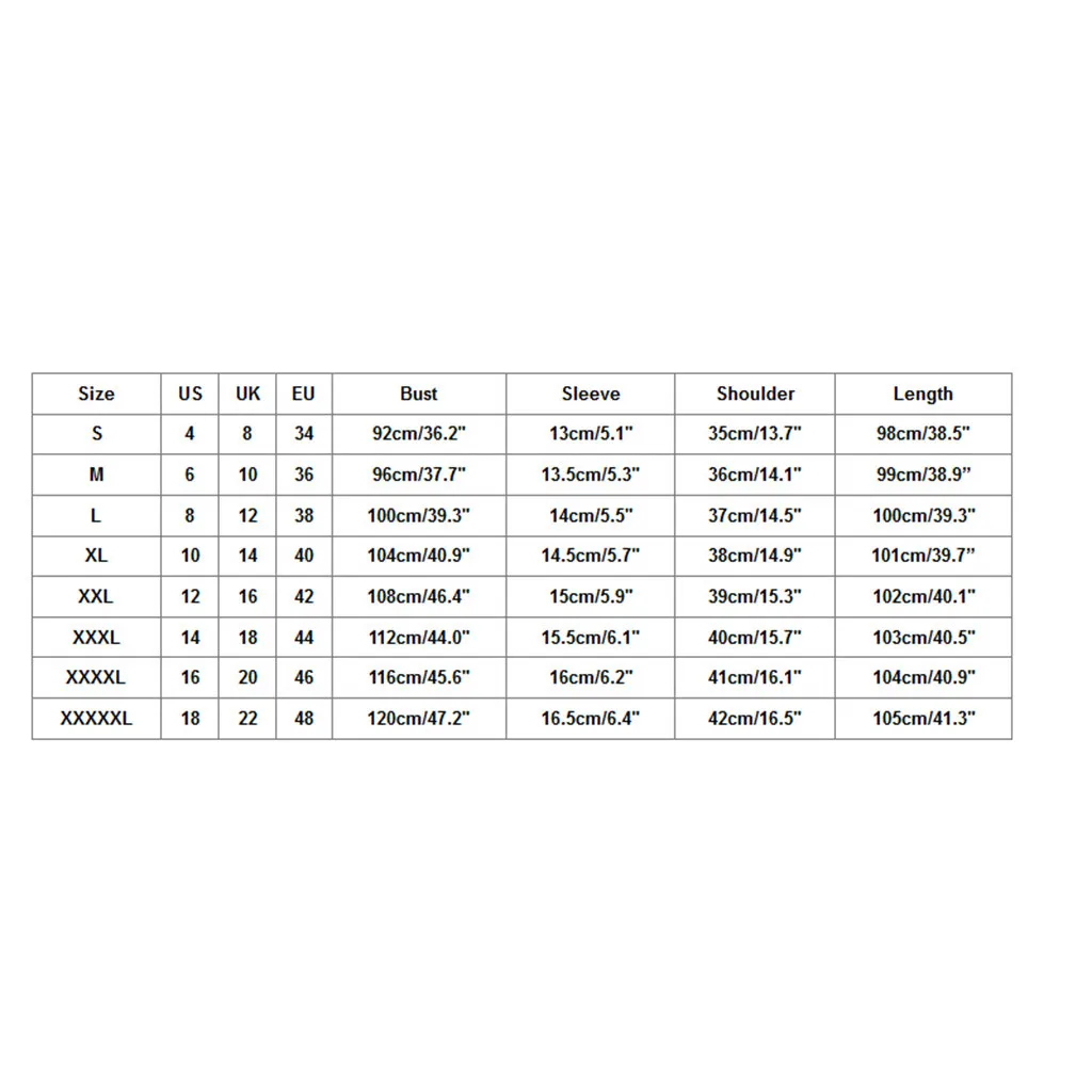 Размер США Великобритания ЕС Бюст Рукав Плечо Длина S 4 8 34 92 см/36,2" 13 см/5,1" 35 см/13,7" 98 см/38,5" М 6 10 36 96 см/37,7" 13,5 см/5,3 дюйма 36 см/14,1" 99 см/38,9 дюйма L 8 12 38 100 см/39,3" 14 см/5,5 дюйма 37 см/14,5" 100 см/39,3" XL 10 14 40 104 см/40,9" 14,5 см/5,7 дюйма 38 см/14,9" 101 см/39,7 дюйма XXL 12 16 42 108 см/46,4" 15 см/5,9 дюйма 39 см/15,3" 102 см/40,1" XХХL 14 18 44 112 см/44,0" 15,5 см/6,1 дюйма 40 см/15,7" 103 см/40,5" XXXXL 16 20 46 116 см/45,6" 16 см/6,2 дюйма 41 см/16,1" 104 см/40,9" XXXXXL 18 22 48 120 см/47,2" 16,5 см/6,4 дюйма 42 см/16,5" 105 см/41,3"
