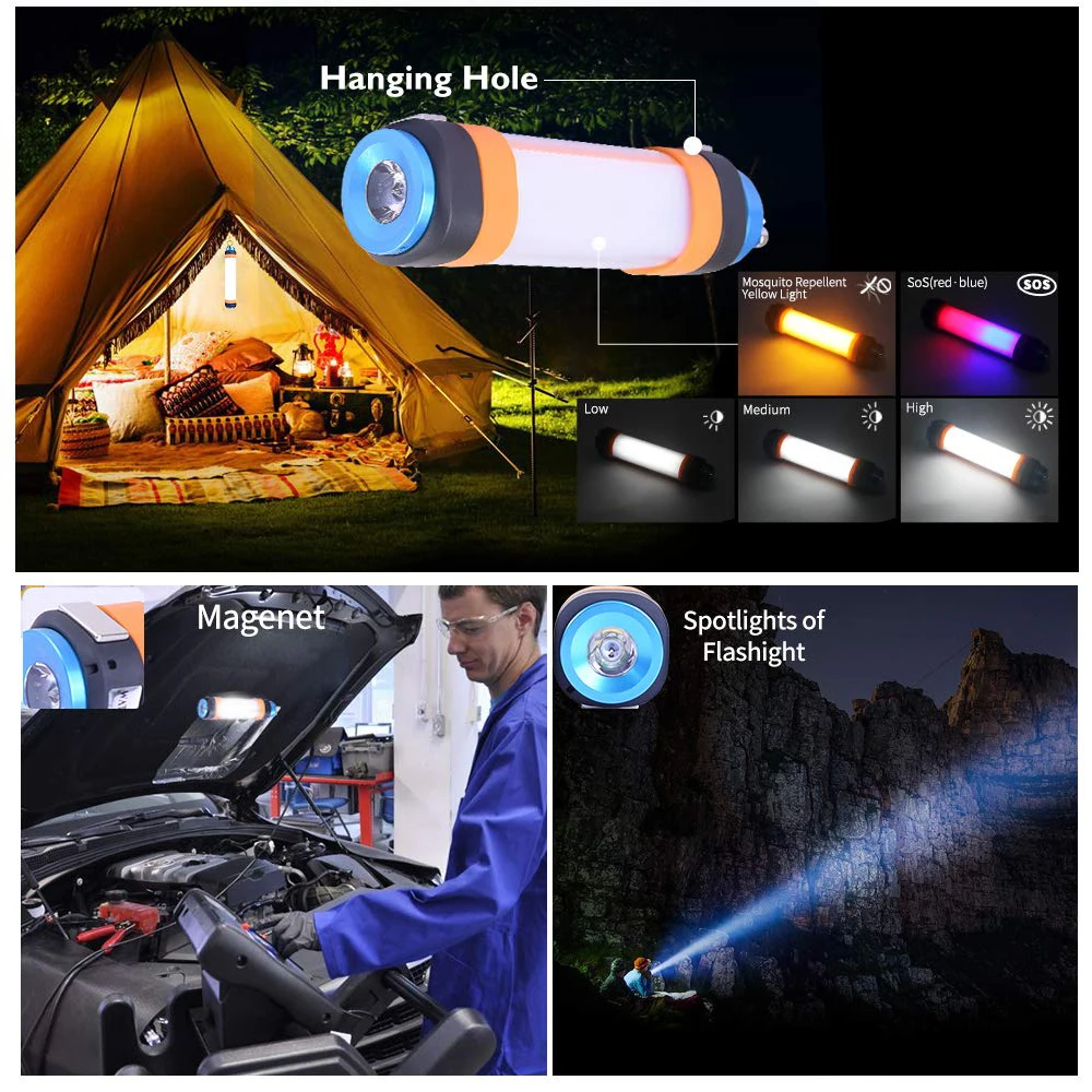 Многофункциональный 6 режимов работы: портативный светильник вспышки, 3 типа светильник яркости ing, красный и синий мигающий аварийный светильник SOS, Противомоскитный желтый светильник.
