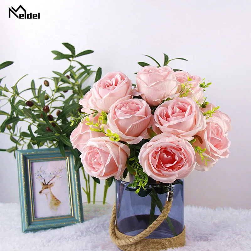 Meldel Свадебный букет невесты настоящий на прикосновение шелк розовый белый цветок композиция DIY для дома вечерние украшения выпускного вечера свадебные принадлежности