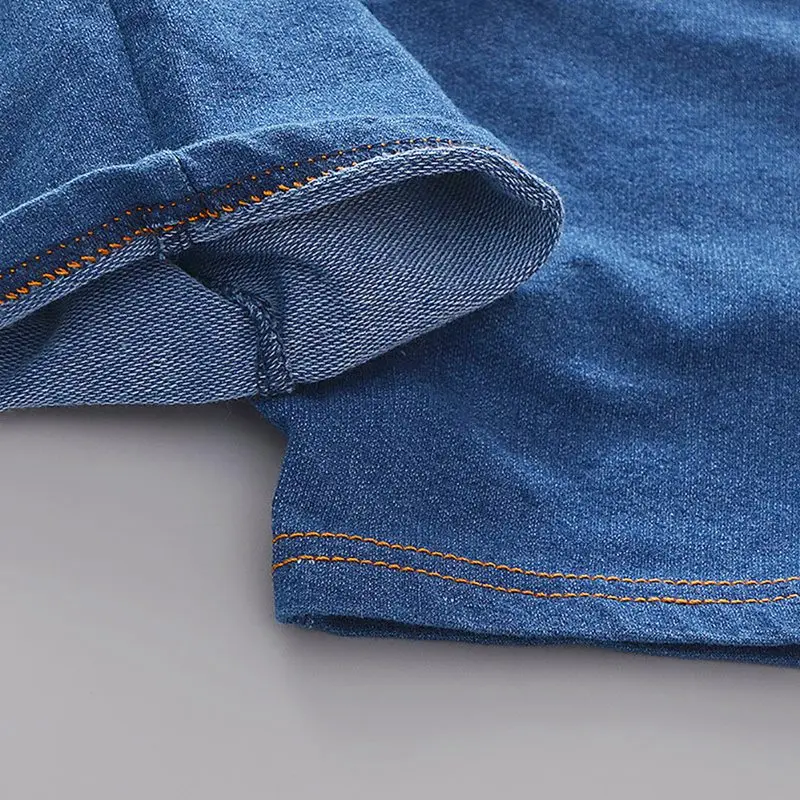 Изготовлен из хлопка и денима, мягкий на ощупь, не вредит коже ребенка