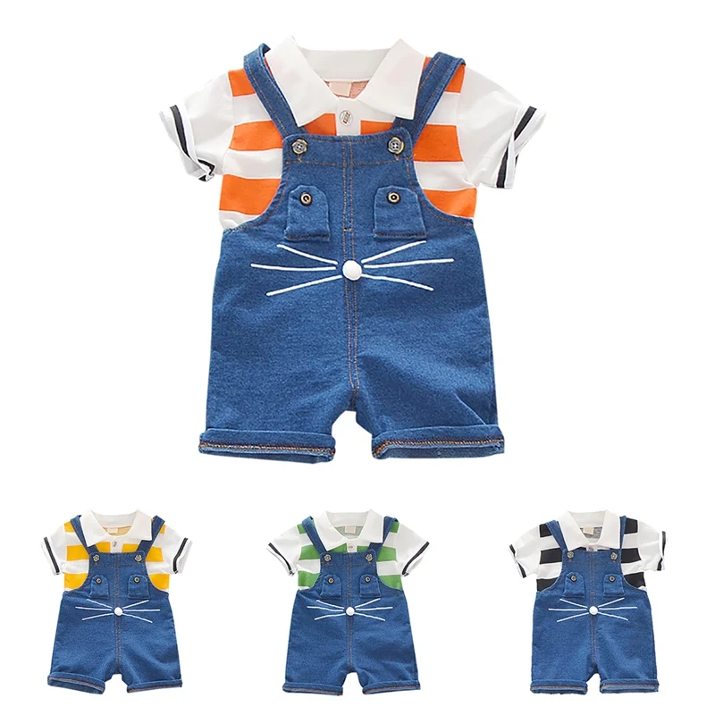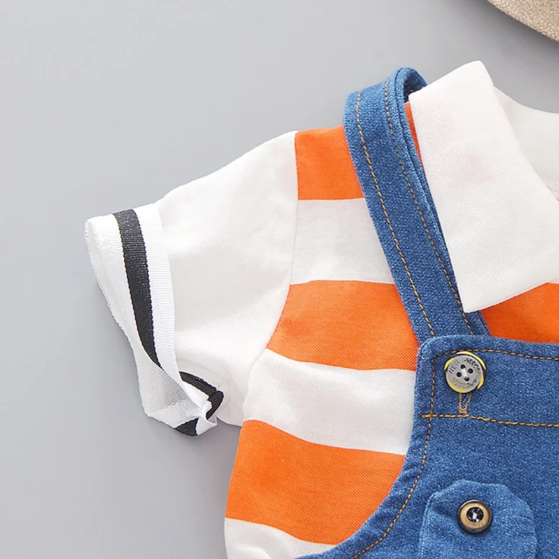 Повседневная хлопковая футболка в полоску с короткими рукавами и штаны на подтяжках, которые сделают ваших детей крутыми и привлекательными
