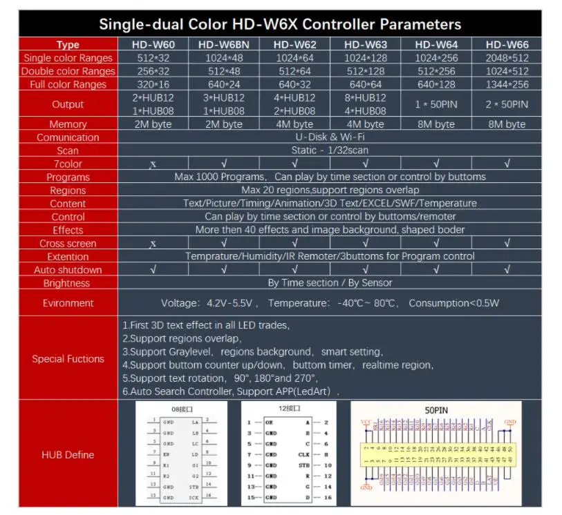 Huidu HD-W66 2*50 Pin 2048*512 WIFI + Ethernet + USB порт один и двойной цвет семицветный светодиодный контроллер экрана заменить HD-E66