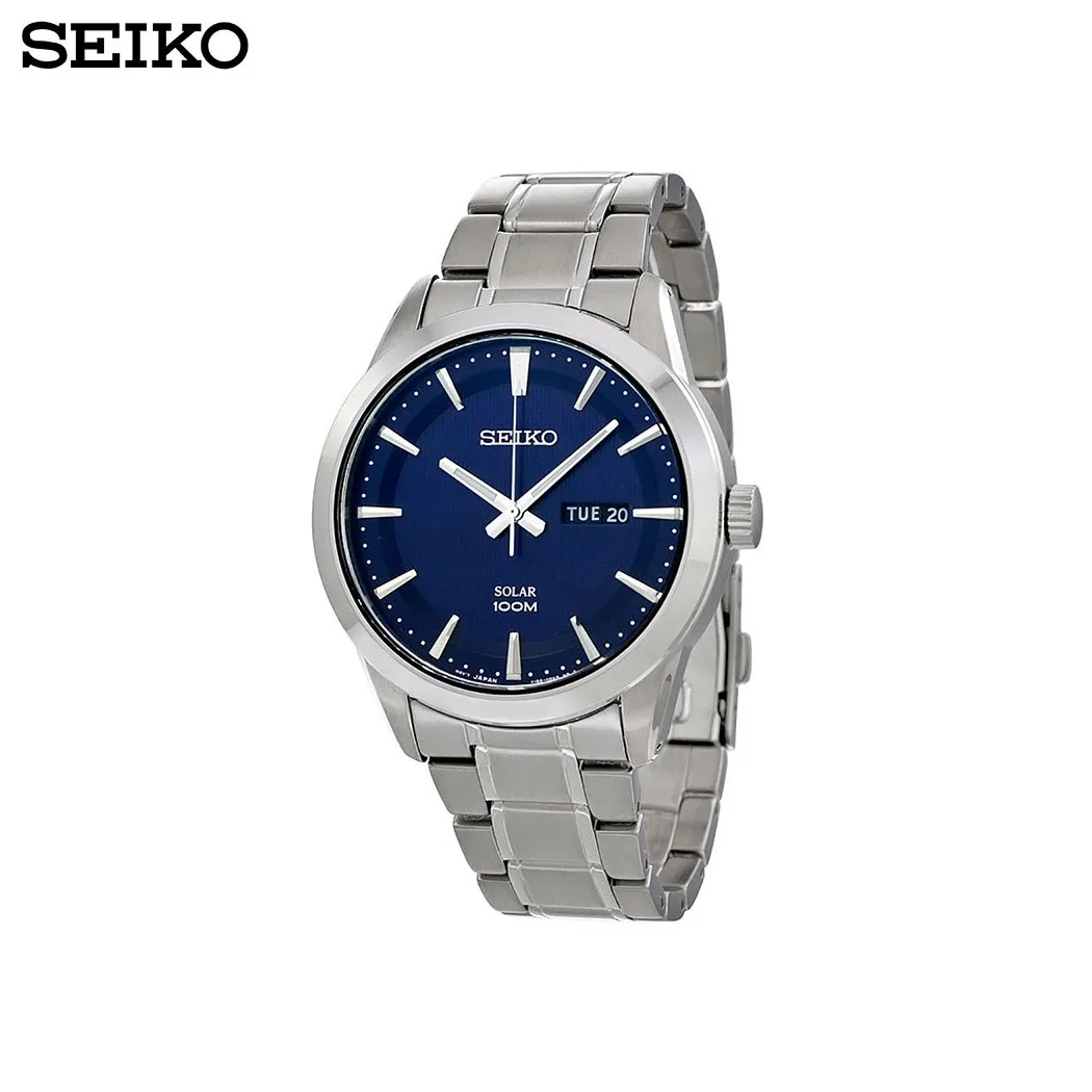 Механизм V158. Питание батареи от солнечного элемента. Индикация числа и дня недели. Устойчивое к механическим воздействиям многослойное минеральное стекло изготовленное по технологии Hardlex. Корпус и браслет часов выполнены из стали. Диаметр корпуса 43 мм, толщина 10.6 мм. Ширина браслета 21 мм.