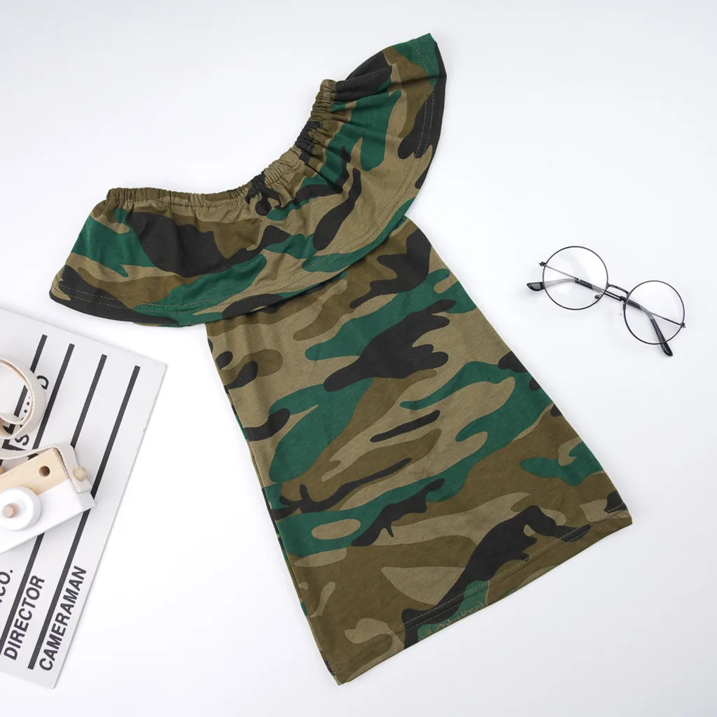 Toddler Kid Baby Girl Camouflage Printed Off Shoulder Princess Dress Clothes
