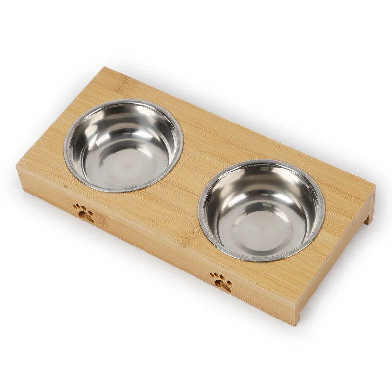 Двойные миски для собак для щенков из нержавеющей стали, бамбуковая подставка для еды, миска для воды, кормушка для домашних животных, кошек, миска для кормления собак, миска для напитков