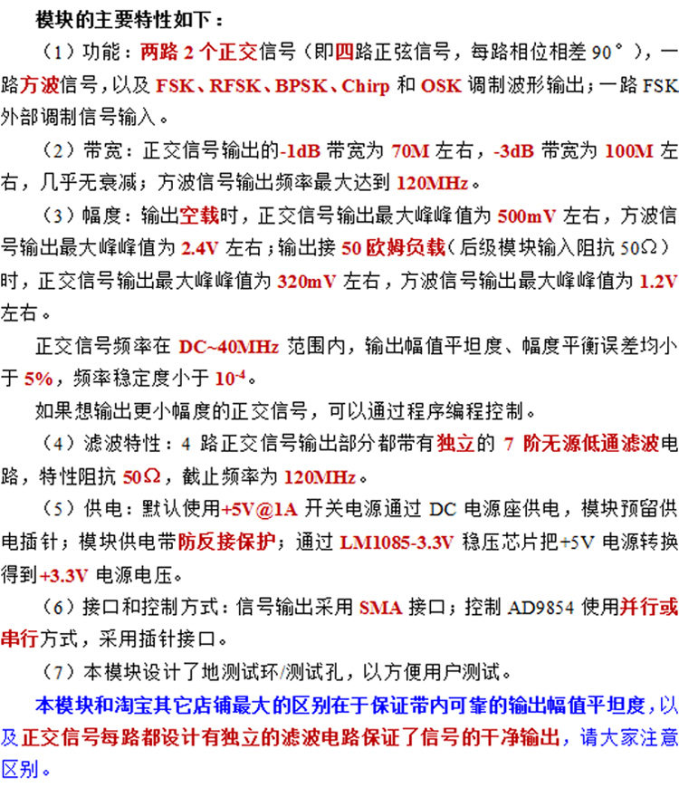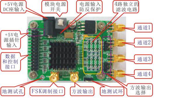 模块正交 、 调制或方波的输出连接方式分别下图所示, 示波器输入阻抗设置为50Ω输入模式 (即模块输出驱动50Ω负载) 。