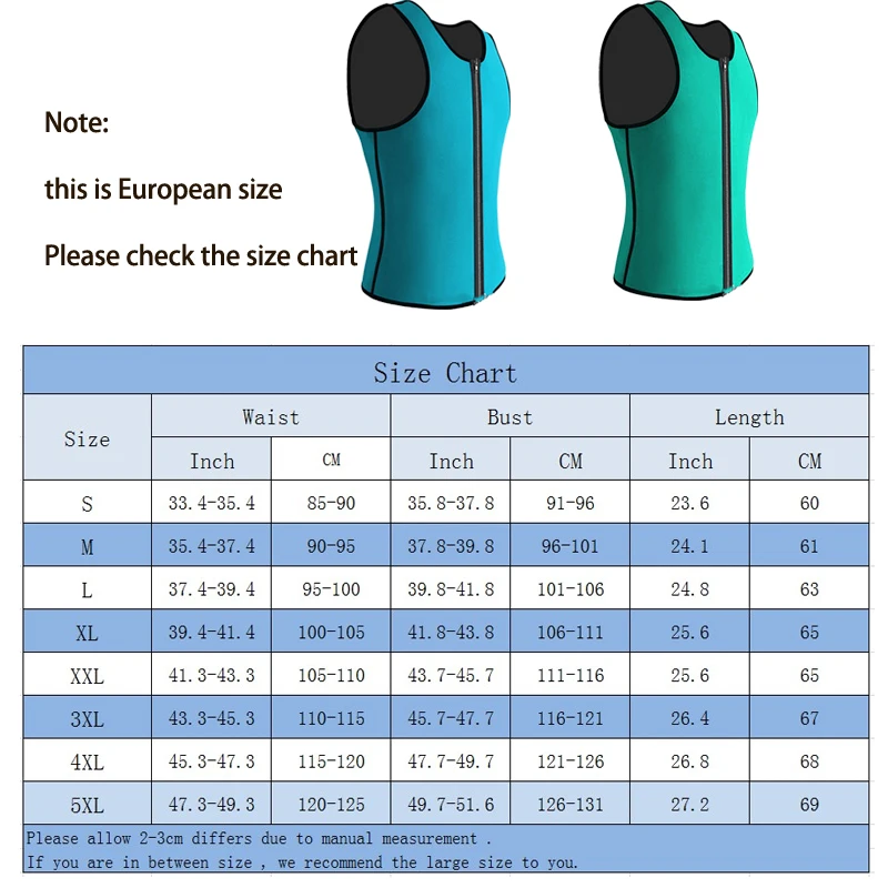 Прямая поставка $ оптовая продажа * Поддержка выполнения заказа через файл CSV или XLS * Быстрая обработка в течение 24 ч и транспортировка * Без счета-фактуры, цены, продвижения, логотипа 5XL мужской формирователь жилет моделирующее белье для тренировок ультра пот тренажер для похудения Неопреновая рубашка для сауны потеря веса формирующий корсет на молнии Это европейский размер, пожалуйста, проверьте таблицу размеров перед покупкой Купите больше, получите больше скидок. --------------- * Дисплей продукта *