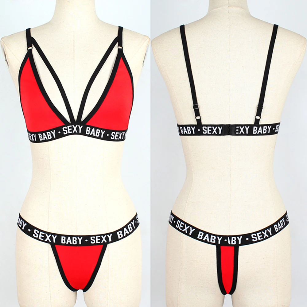1 комплект, женское сексуальное Спортивное нижнее белье, бюстгальтер пуш-ап + трусики-стринги, женское нижнее белье, летние сексуальные бандажные трусики-стринги с буквенным принтом