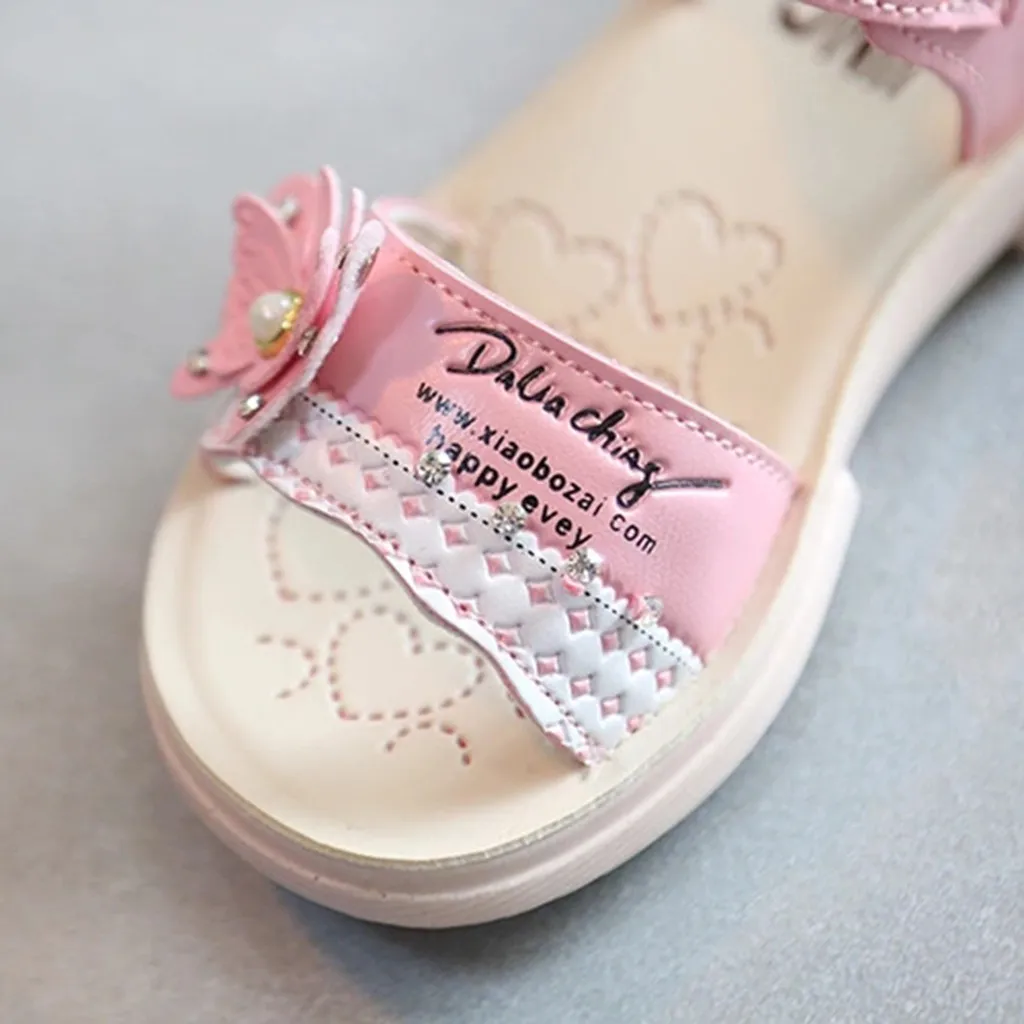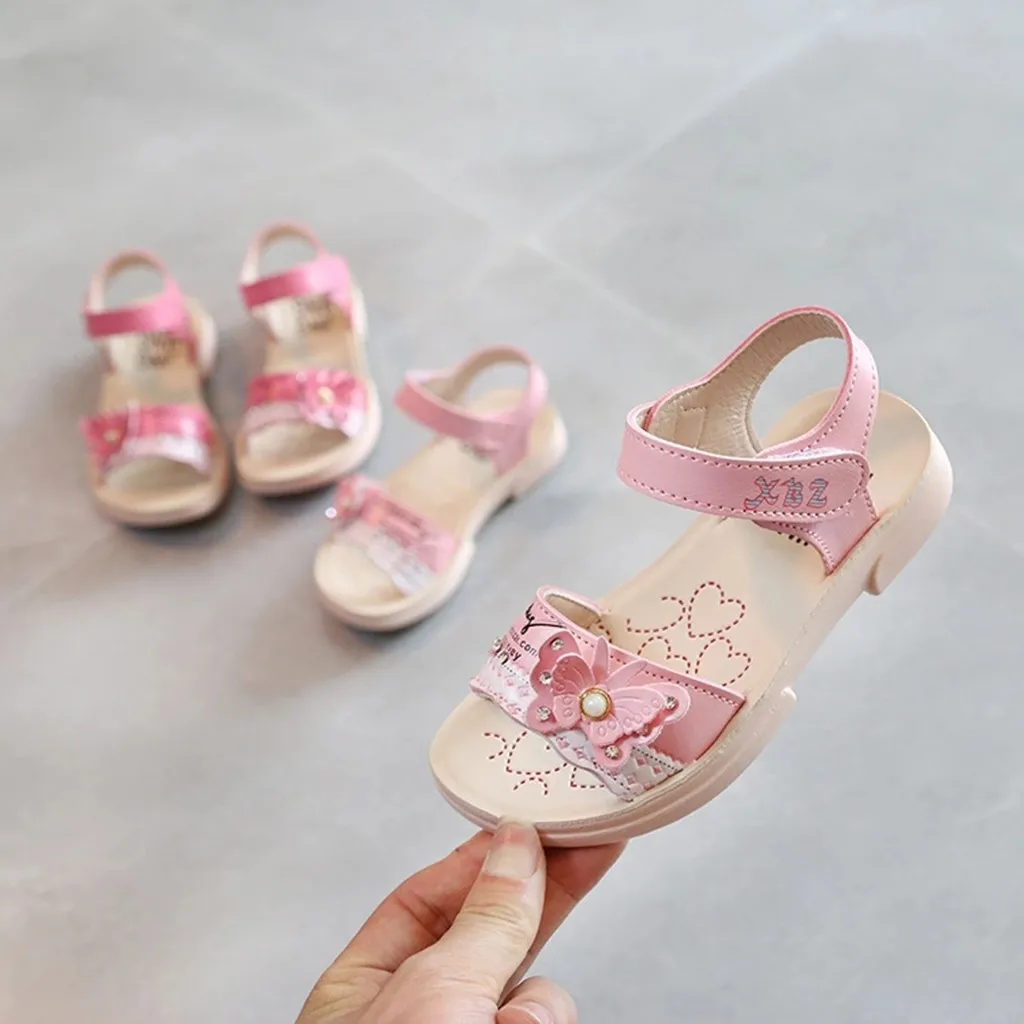 Летнее платье для младенцев Пляжные сандалии для принцессы с украшением в виде бабочки и жемчуга