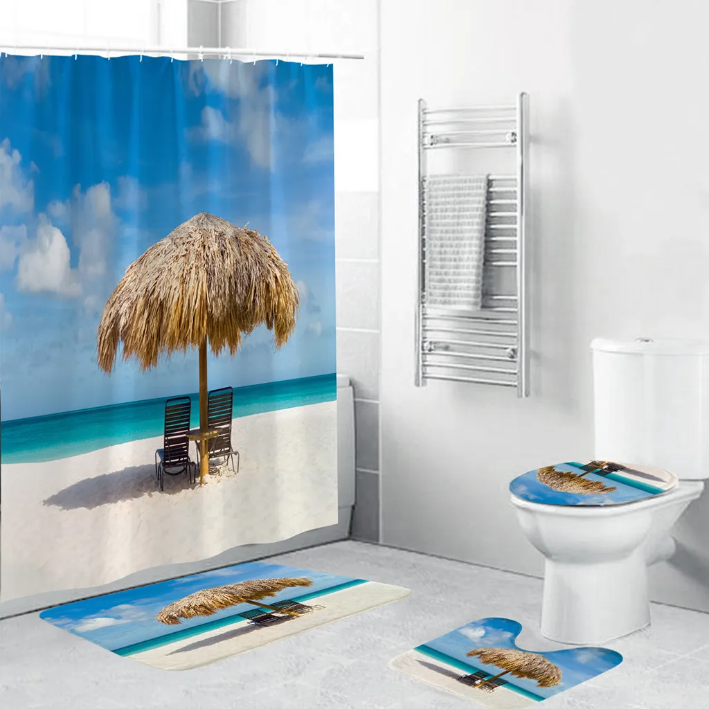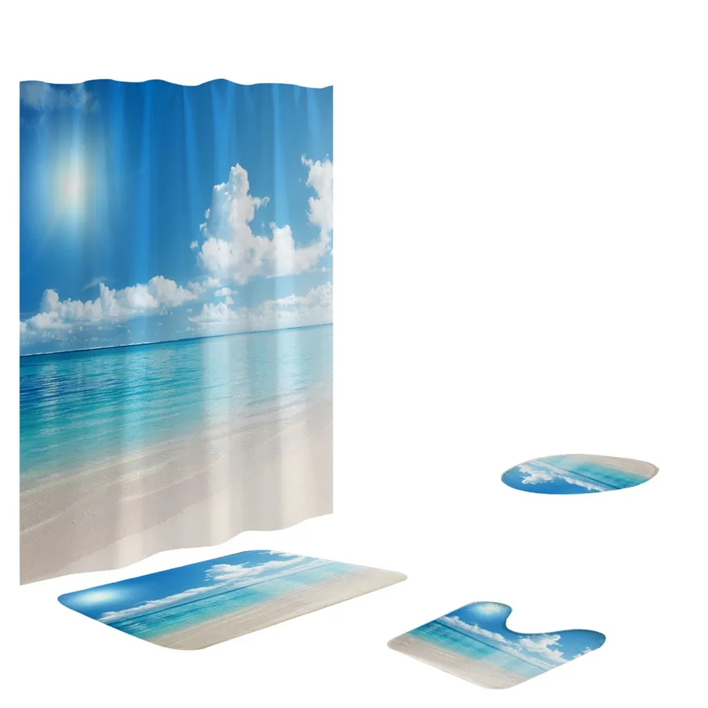 Ouneed набор штор для душа, 4 шт., нескользящий пляжный стиль, рисунок, туалет, полиэстер, покрытие, коврик, набор, Морская звезда, ванная комната, занавеска для душа, новинкаПрямая доставка Пункт продажи товара: Мягкое и удобное ощущение, Сетчатое дно из ПВХ, нетоксичное, без запаха, не заплесневелое. Легко впитывает воду и пыль, нетоксичный, хорошая вентиляция. Легко моется, не линяет и не выцветает, задняя сторона избегает прямых солнечных лучей. Предотвращение брызг воды снаружи душа и защита конфиденциальности для людей. Изображения отпечатаны с использованием технологии сублимации теплового красителя для стойких эффектов. Описание: Материал: полиэфирное волокно Оснащен крючками для штор. Предназначен для ванн. Предотвращает брызги воды из душевой кабины. Идеально подходит для большинства стандартных ванных комнат; просто Повесьте его на стальную трубку. В комплект входит: 4 шт. Нескользящие унитаз полиэстер покрытие коврик набор ванная комната занавеска для душа