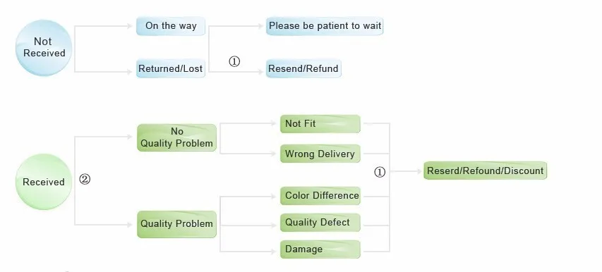 1. Ваши товары будут отправлены на второй рабочий день после получения оплаты. (Мы сообщим вам по электронной почте, если возникнет задержка из-за праздничных мероприятий.)