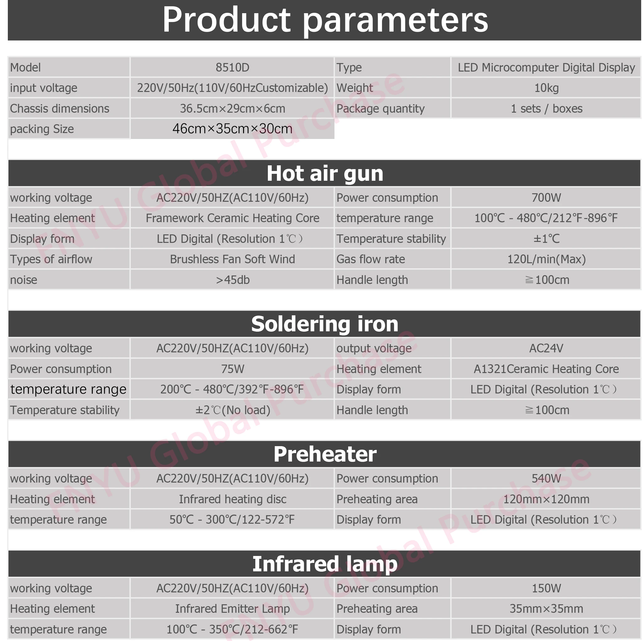 Новый шаблон SAIKE 8510D многофункциональный инфракрасный горячий воздух демонтаж сварочная платформа универсальное освещение Прожектор 5 в 1 bga паяльная станция