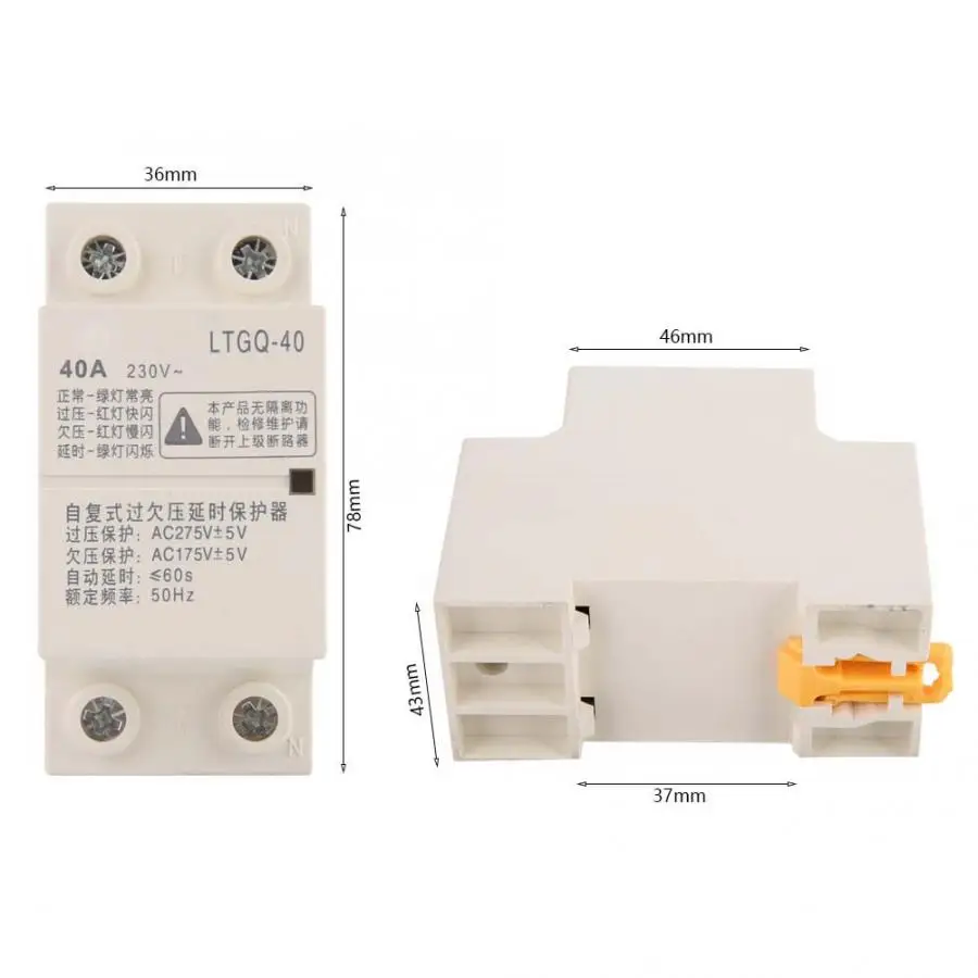 Регулируемое реле защиты напряжения автоматическое повторное подключение перенапряжения и реле защиты под напряжением 2P40A защита задержки