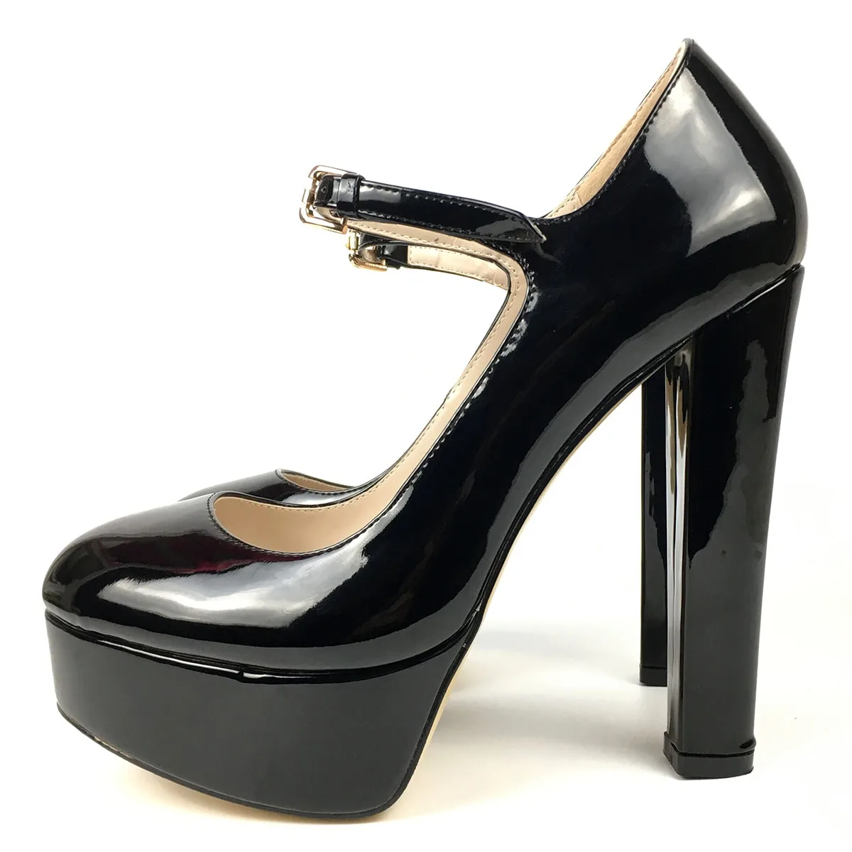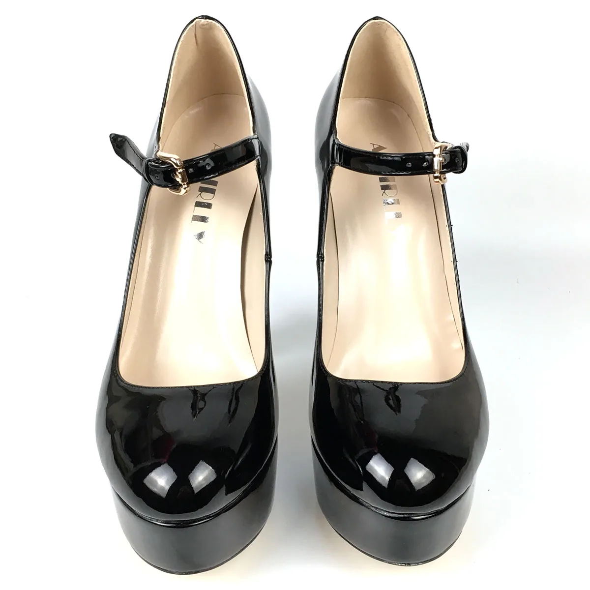 Aimirlly/Женская обувь; Туфли-лодочки на платформе; круглый носок; Высокий каблук; ремешок с пряжкой; женская вечерняя Клубная обувь; Цвет Черный; лакированная кожа
