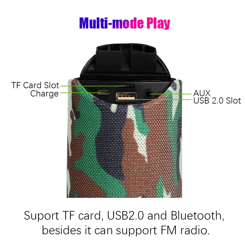 1. Поддержка A2DP,AVRCP, громкая связь, fm-радио 2. С функцией FM, можно осуществлять поиск радиостанций, вещание автоматически 3. Международные современные технологии беспроводных чипов и схем, поддержка всех беспроводных устройств. 4. С Hi-Fi динамиком, чтобы убедиться, что чистый и яркий звук. 5. Поддержка карт Micro SD и USB, воспроизведение MP3 формата аудио. 6. Беспроводная рабочая станция 10 метров. 7. С входом AUX, можно напрямую подключать внешние устройства, например, планшетный ПК/телевизор/мобильные телефоны. 8. Он будет автоматически закрываться через 30 минут, если режим bluetooth не будет подключен