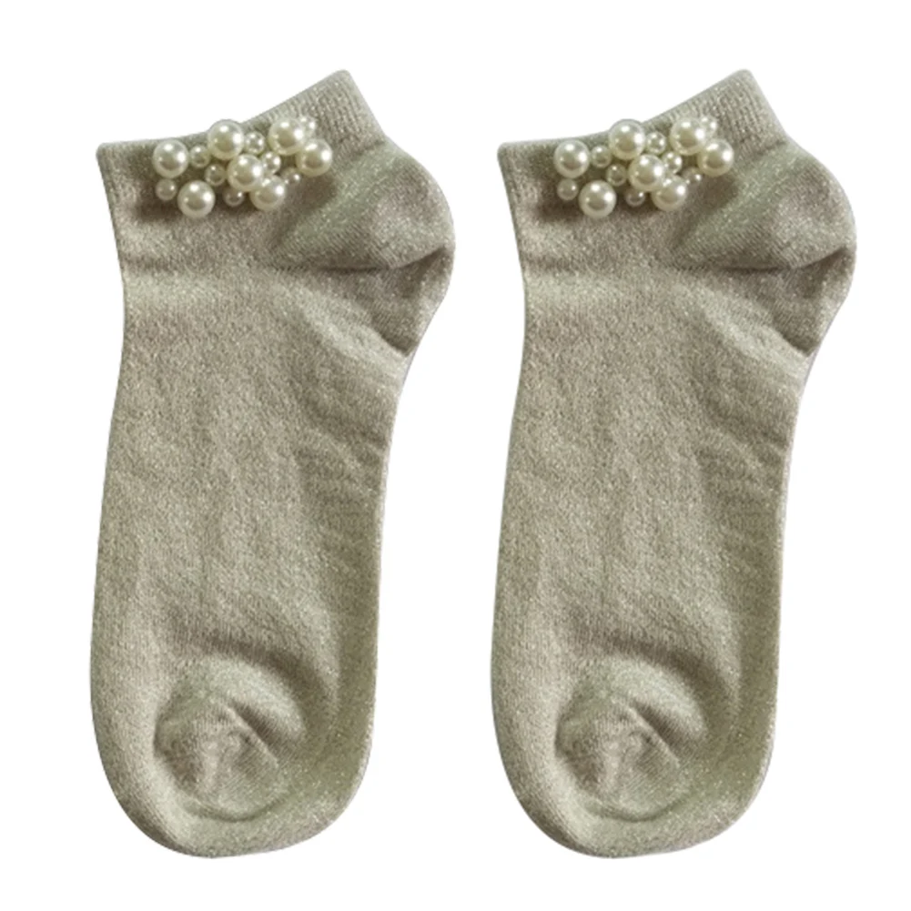 Модные блестящие дышащие Хлопковые женские эластичные короткие носки с искусственным жемчугом и бисером