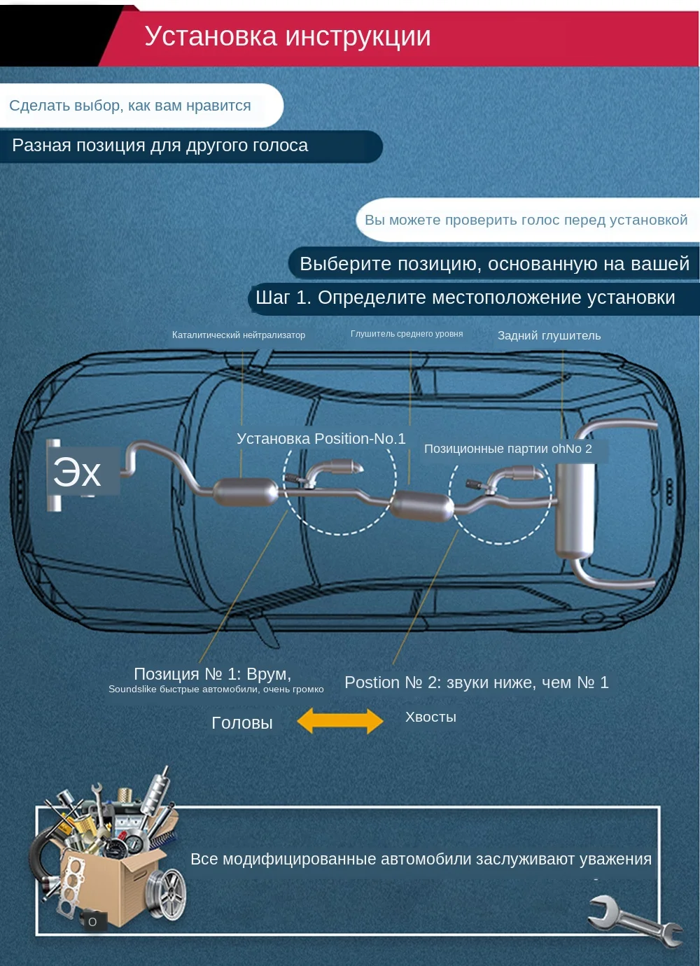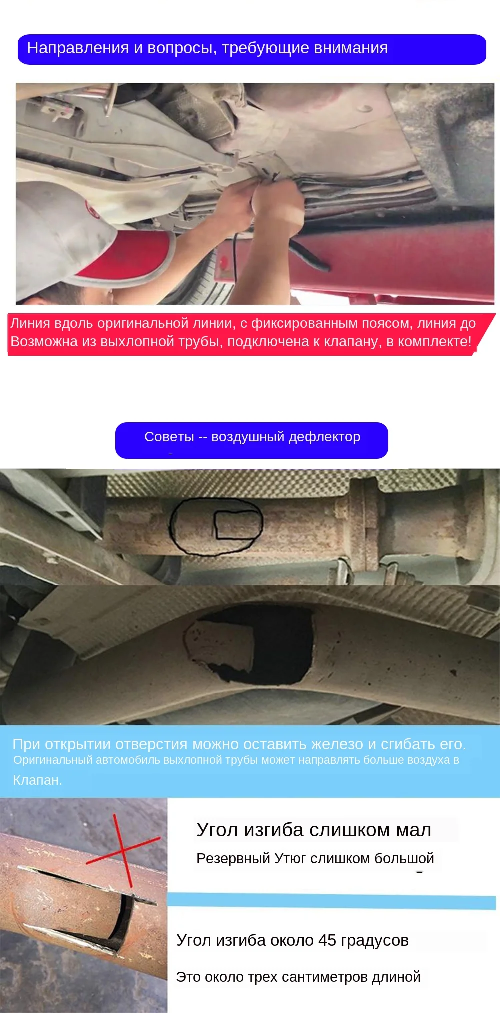 Описание: Получите звук спортивного автомобиля, пульт дистанционного управления и очень легко. Подключение питания: 12 В источник питания, три способа подключения 1. Подключите прикуриватель, 2. Подключите аккумулятор (Выключите двигатель без питания, нужен провод предохранителя) 3. Подключите ACC (Выключите двигатель без питания, нужен провод предохранителя) Примечание: Пожалуйста, установите его под профессиональной инструкцией. Установите переднюю и заднюю часть выхлопного барабана для естественного всасывания двигателя, и установите только переднюю часть выхлопного барабана для двигателя, который находится на принудительной индукции через турбонагнетатель или нагнетатель. Очень приятно, что в бензиновом автомобиле. Но в автомобиле с дизельным двигателем звук не такой хороший, как в автомобиле с бензиновым двигателем. И специальный дизельный двигатель с турбонаддувом, эффект звуков очень плохой.