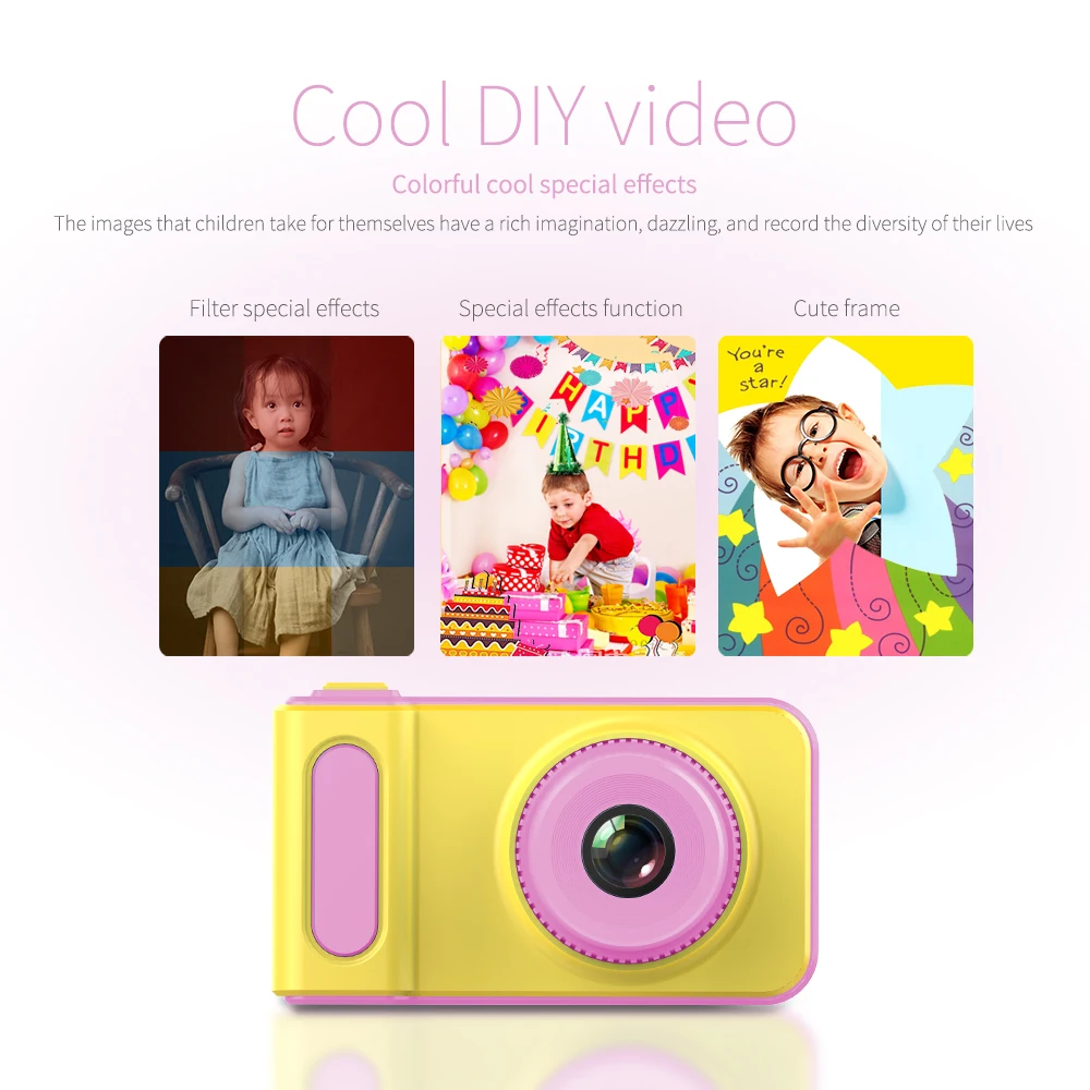Милая цифровая камера для детей: милый и яркий цветной дизайн, привлекательный для детей, плюс прилагаемые Мультяшные наклейки для DIY, детям понравится с первого взгляда.