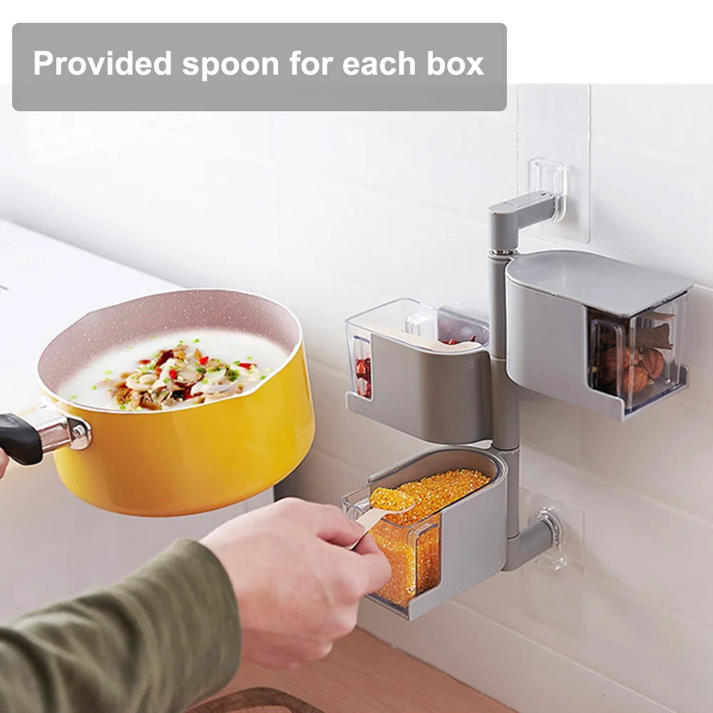 Получите этот вращающийся настенный контейнер для специй для кухни. Он имеет стальной ролик и пластиковую коробку. Со съемной коробкой для рисования, прозрачной передней частью, с небольшими ложками, пылезащитным верхним покрытием и вращающейся конструкцией, вы можете хранить приправы отдельно и легко использовать их.