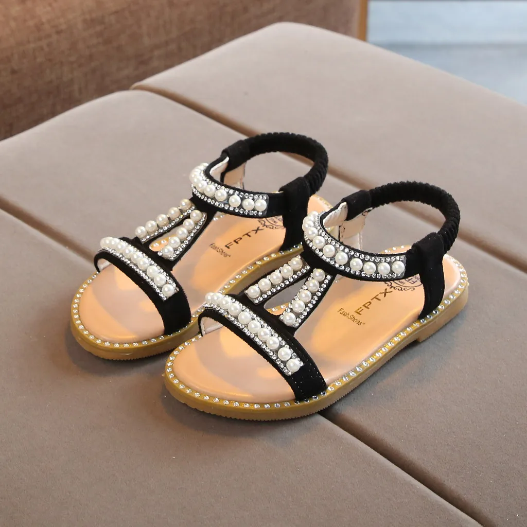 Сандалии в римском стиле с жемчужинами и кристаллами для маленьких девочек