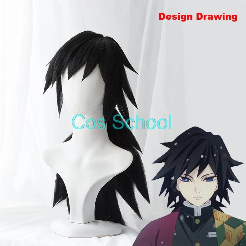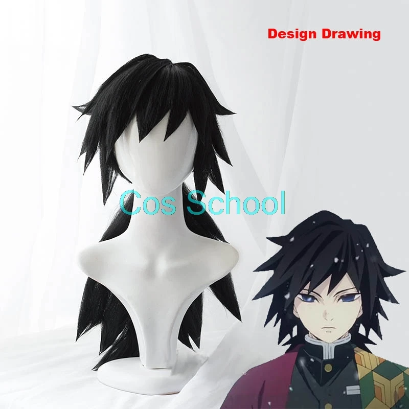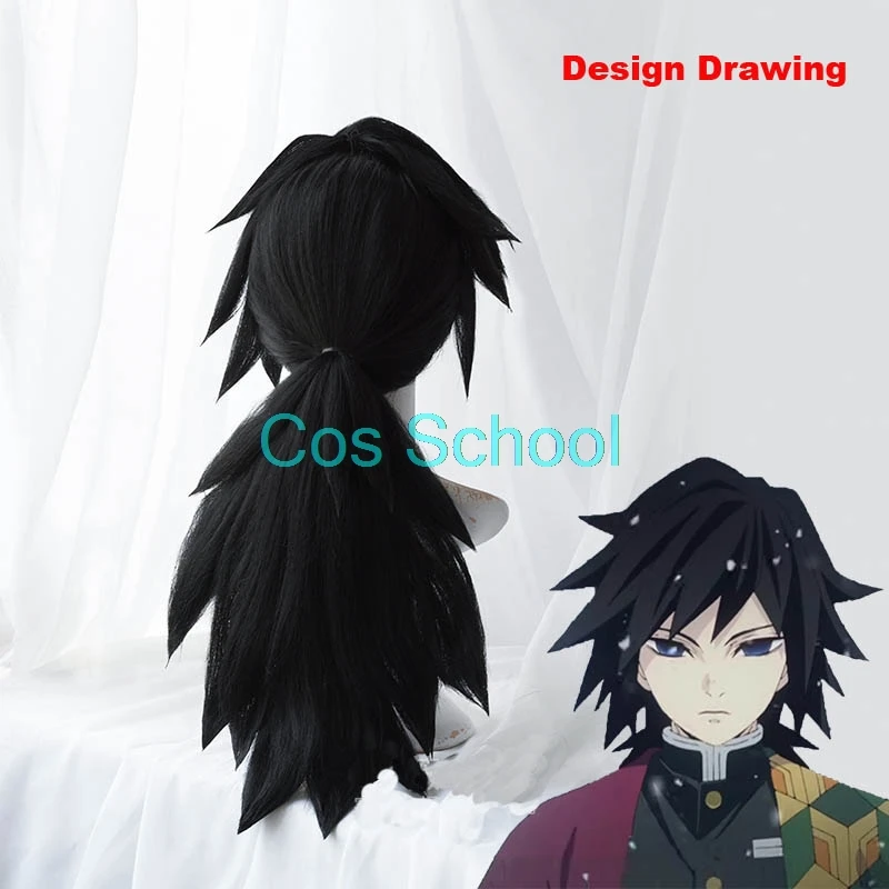 Cosroad Demon Slayer Kimetsu no Yaiba Tomioka Giyuu, парики для косплея, черный конский хвост, длинные волосы Роль: томилочка giyuu