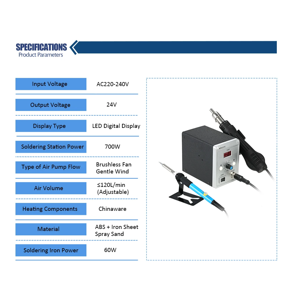 Эта высококачественная паяльная станция небольшого размера идеально подходит для пайки, демонтажа и обслуживания телефона. Это быстрый нагрев, и он может начать работать через минуту.