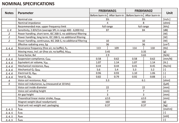 3,25 "Преобразователи FR084WA01 (4 Ом) и FR084WA02 (8 Ом) были разработаны специально для высококачественных мультимедийных и динамиков, где требуется воспроизведение звука без компромиссов, сохраняя при этом небольшой размер.