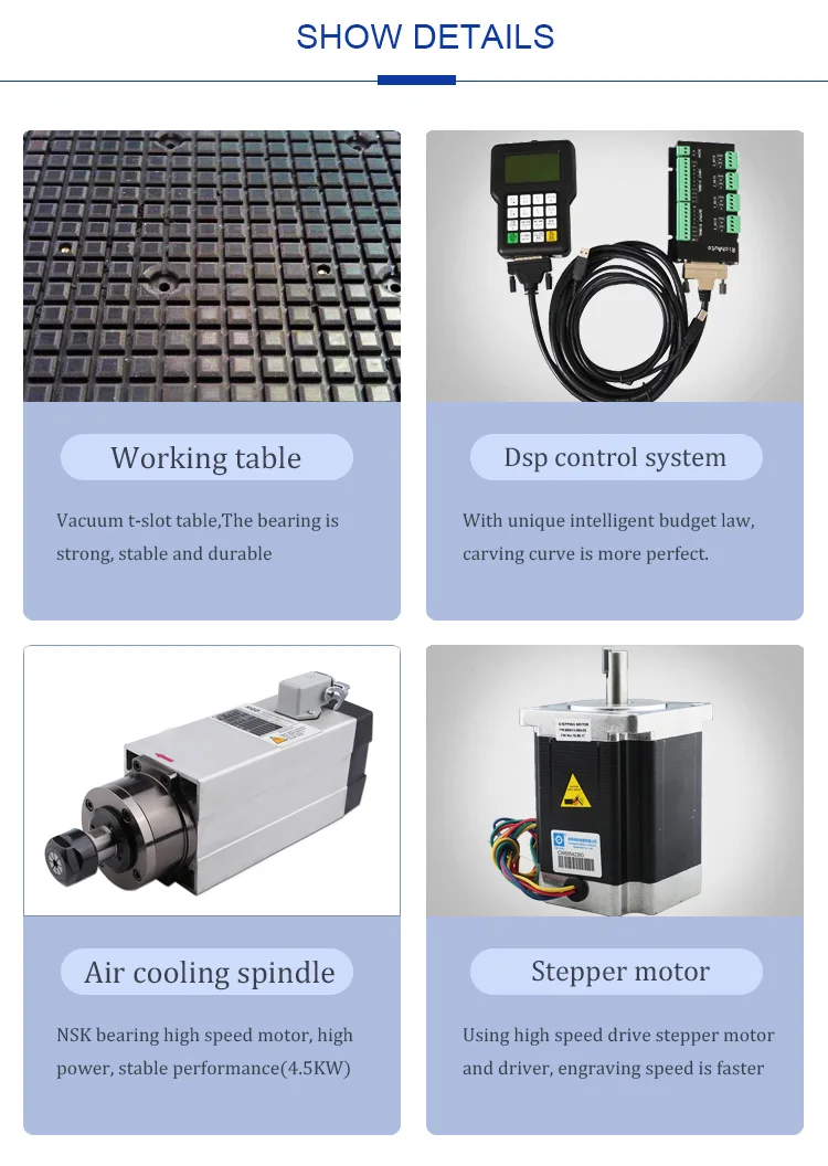 2. Высокоскоростной шпиндель воздушного охлаждения и высокопроизводительный драйвер разделения обеспечивают стабильную работу в течение длительного времени.
