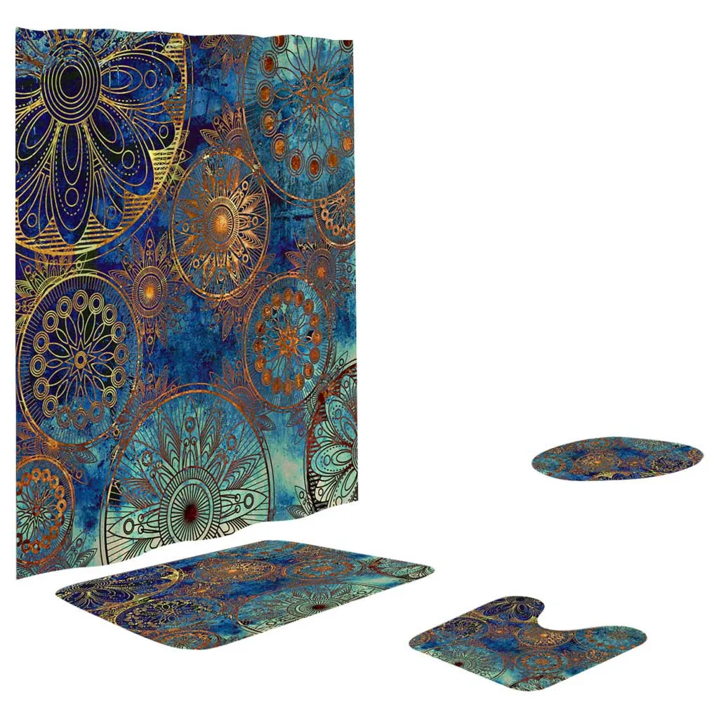 4 шт. Нескользящие унитаз полиэстер покрытие коврик набор ванная комната занавеска для душа