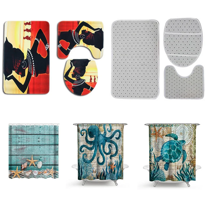 4 шт./компл. душевой занавески для ванной комнаты и базовый Коврик и крышка для унитаза и коврик для ванной комнаты.