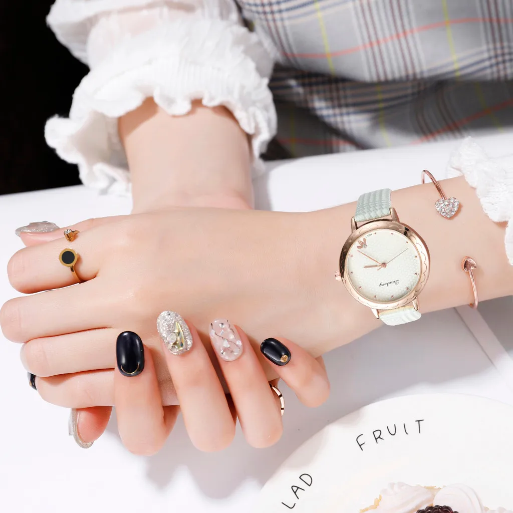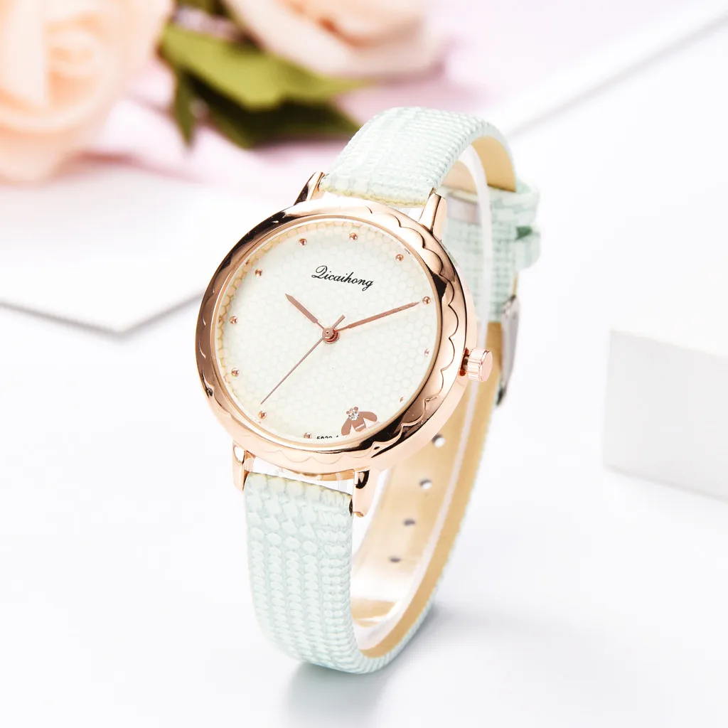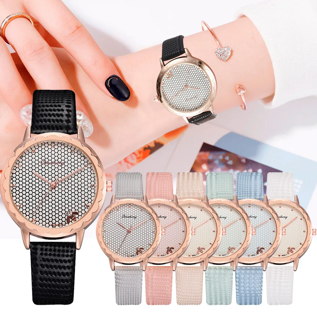 Модные Простые повседневные женские часы с кожаным циферблатом и ремешком