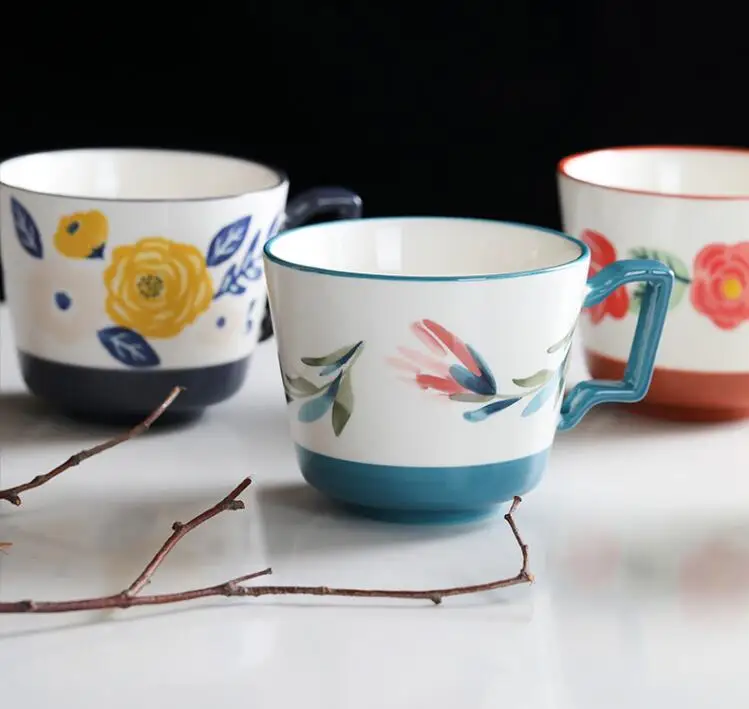 Креативная Всесезонная кружка в цветочек, домашняя керамическая чашка для воды, Офисная большая емкость, чашка для овсянки Q70