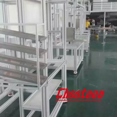 Chooteen алюминиевые собственные экструзии алюминиевой сборочной линии с 580T, 920T, 1460T , 1880T , 2600T , 4050T и много видов подходящего оборудования, также, производя наборы процесса включают в себя удар, токарный станок, сверлильный станок, контурный станок, шлифовальный станок, станок для резки проволоки, точечная сварка, сварка газовым щитом, поздние ножницы, Станок с ЧПУ и центр резки.