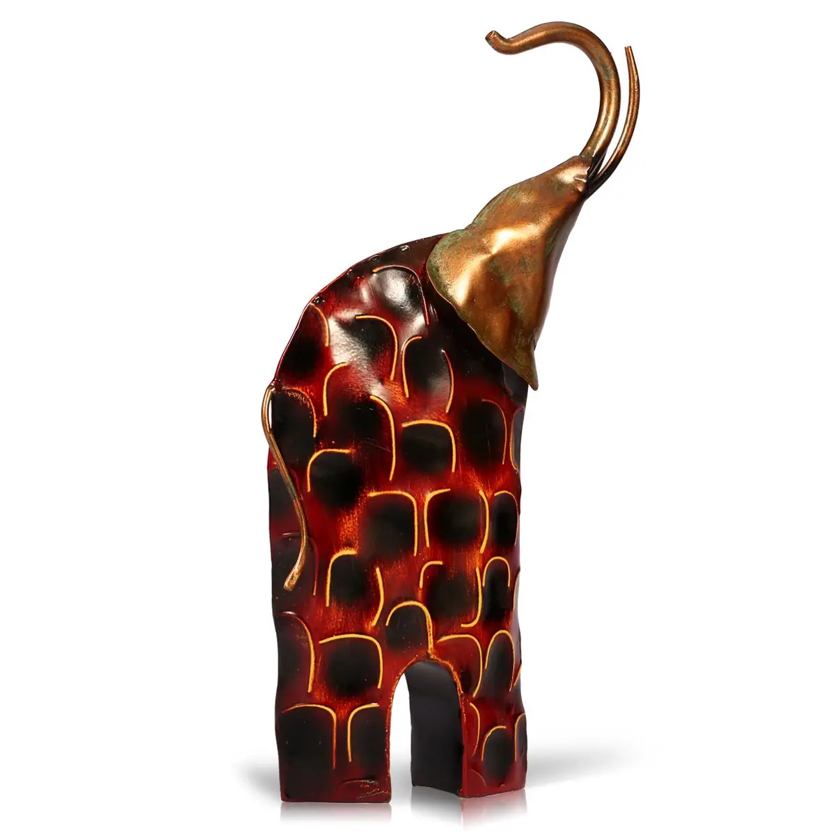 Это металлическая скульптура какого-либоПоднятая головкаСлон. Слон символизирует благоприятный образ. Изготовлено вручную с использованием различных методов литья кованого железа старым мастером. Красивый и экологически чистый цветной лак гарантирует, что он не будет ни ржаветь, ни выцветать. Слон имеет вогнутые и выпуклые полосы на своем теле, выглядит впечатляюще очаровательно. Осанка с видом содержит его положительный дух. Вы можете купить его в качестве подарка для себя или своих друзей.