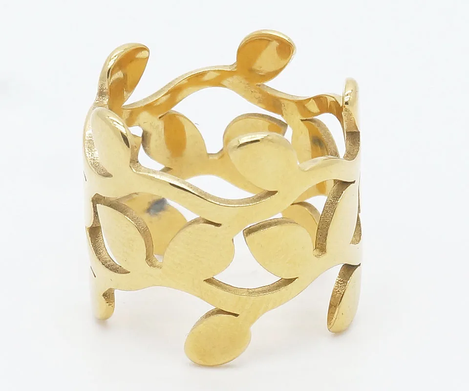 Модный полый лист из нержавеющей стали золотое кольцо для Women