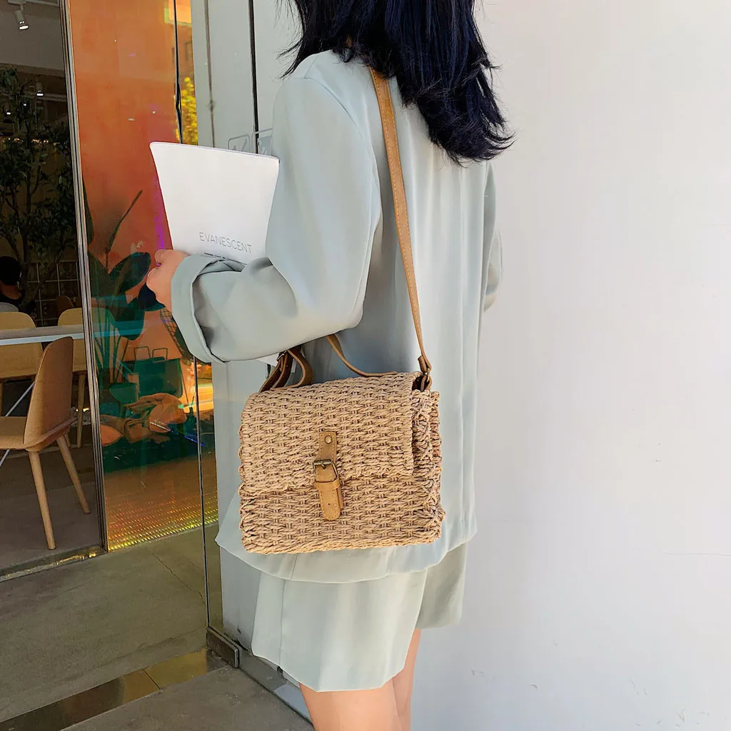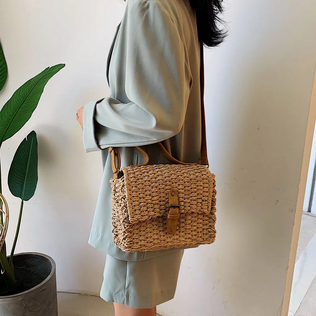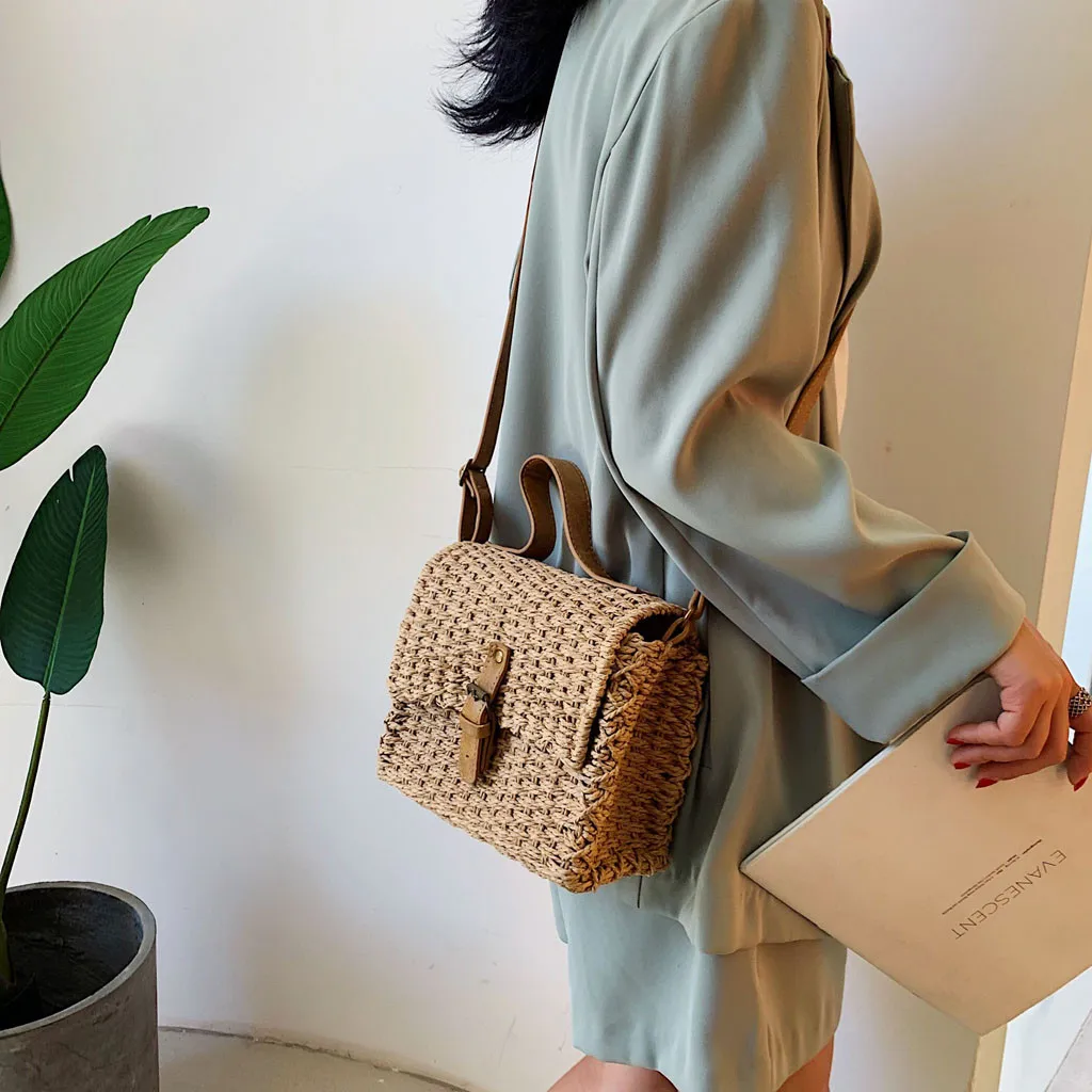 Женская модная Ретро тканая сумка однотонная сумка тканая пляжная сумка