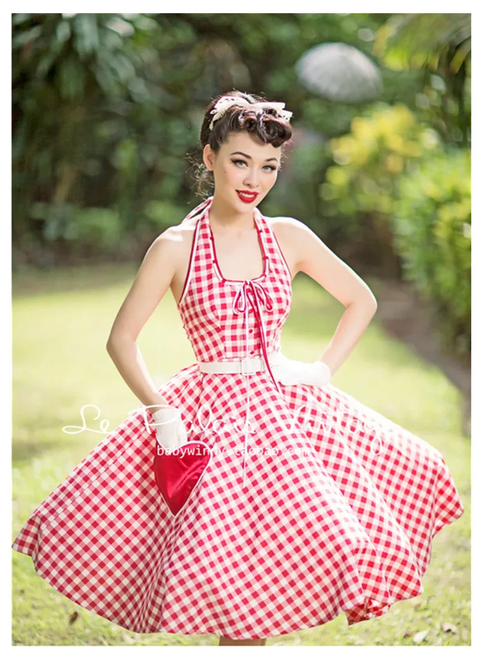 Классическое красное платье в мелкую клетку
