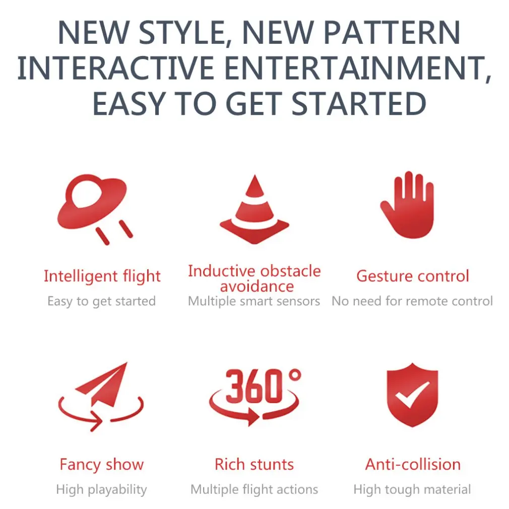 Изготовлен из высококачественных материалов и предназначен для длительной работы. Простота в эксплуатации, компактность и портативность. Светильник с весом и легко переносить в любое место, куда вы хотите. Идеальная игра и подарок для детей, чтобы улучшить реакционные способности вашего ребенка и координацию рук и глаз. Funciton: имеет уровень фиксированной высоты/автоматическое предотвращение препятствий/интеллектуальный полет/инфракрасное зондирование/защита от столкновений и падения/красочное освещение и т. д.