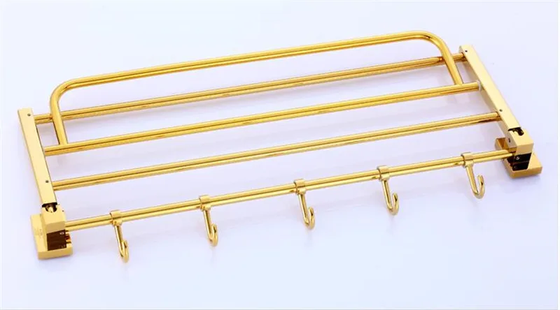 Полка для полотенец для ванной комнаты, складная, из латуни, золото/хром, держатель для полотенец, настенная, 50-60 см, Полка для полотенец с крючками, оборудование для ванной