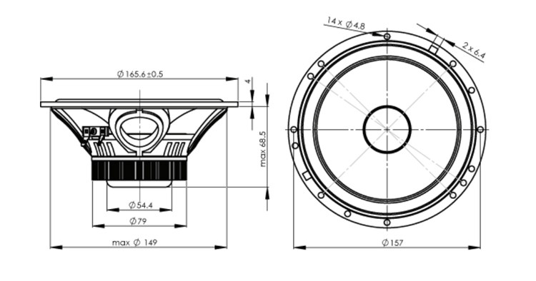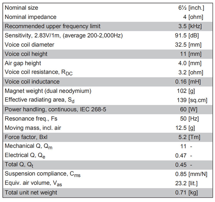 Wavecor WF166TU01 6,5 "литой каркас бумажный конус Средний НЧ-динамик